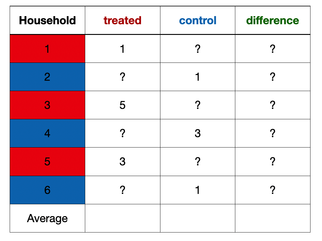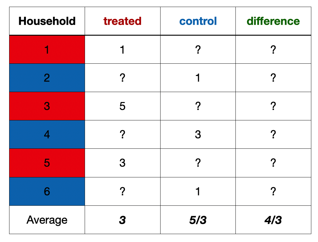 When you assign a household to control, you are realizing the household’s potential outcome under control
