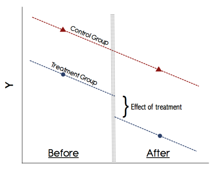 - Average effect for countries that did not receive program: (1+1+1)/3 = 1